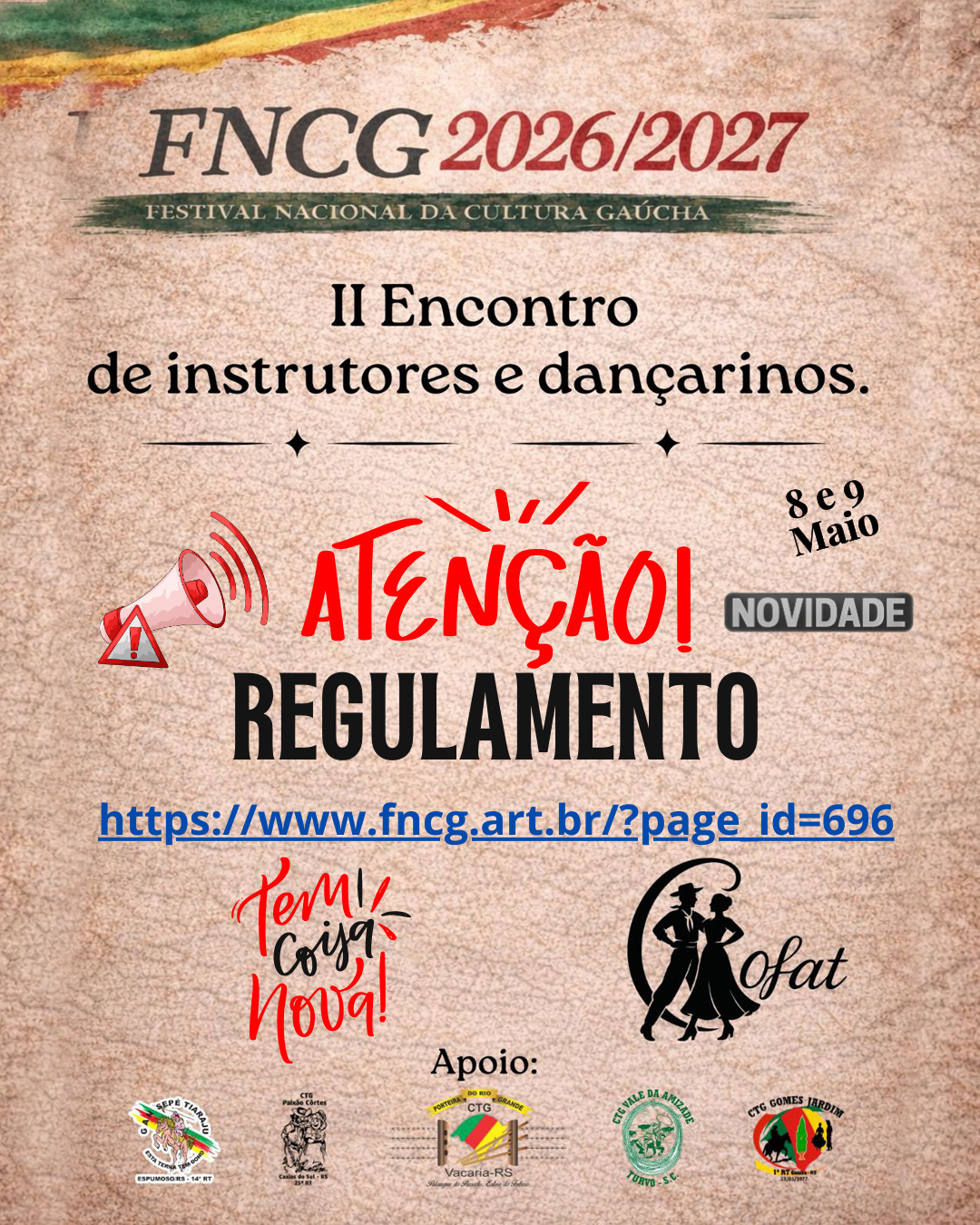 Serão 2 anos de FNCG, oito etapas e 8 vagas (2 por categoria das danças tradicionais) para a grande final do 37° Rodeio Internacional da Vacaria, em fevereiro de 2028.